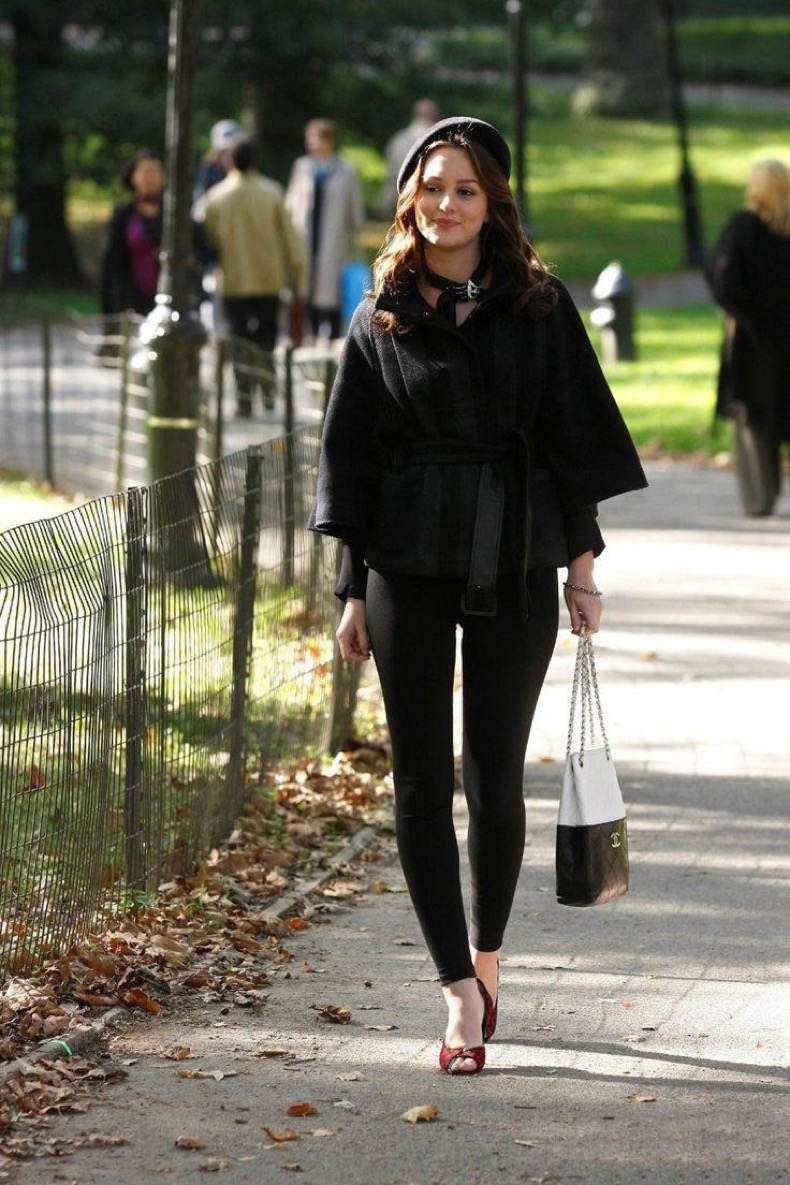 - Stock up on tights. For the colder weather, Blair is always wearing tights. Don’t be afraid to try new colours and patterns; B can be seen wearing red, white, and black tights; as well as having an assortment of beautiful sheer lace ones.